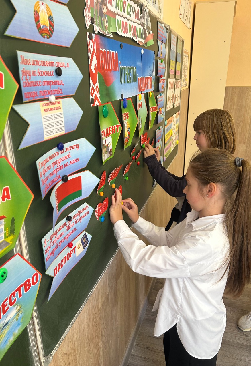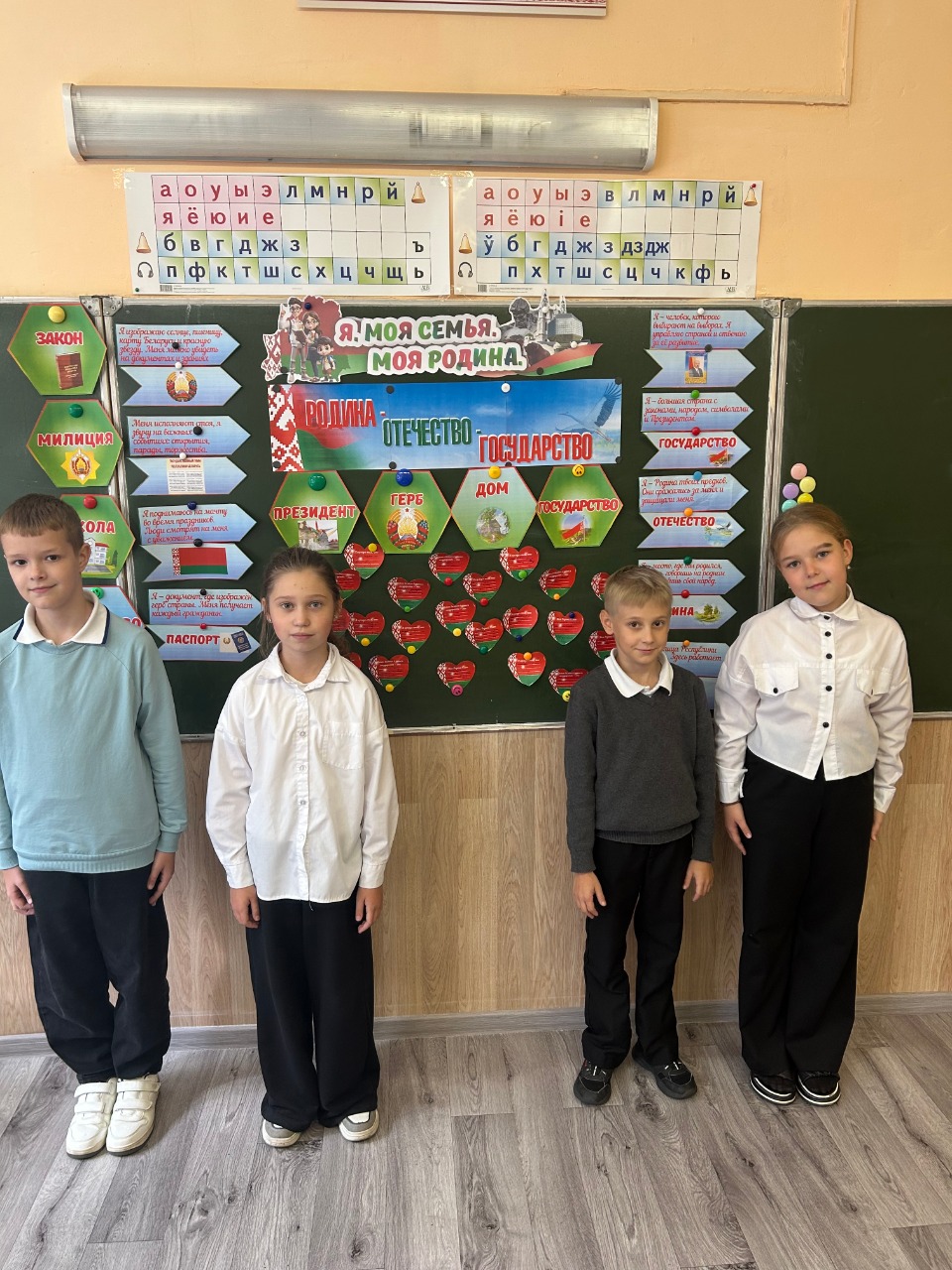 В 4 «А» классе прошло тематическое занятие, в рамках программы «Я. Моя семья. Моя Родина.» . Ребята закрепили свои знания о государственной символике Республики Беларусь, поделились своим мнением, что для них значит «Родина». А подводя итоги мероприятия, каждый учащийся с гордостью говорил: «Я счастлив, что я тут родился!»