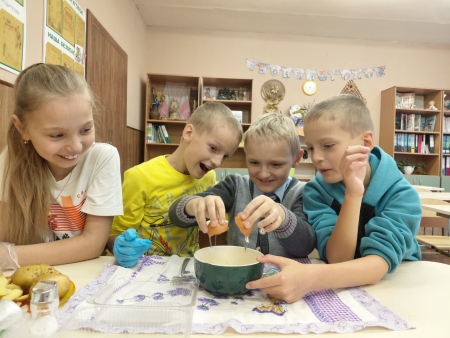 Вучні 3 «Б» класа бліжэй знаеміліся з традыцыйнымі беларускімі стравамі з бульбы, іх назвамі, гісторыяй, тэхналогіяй гатавання