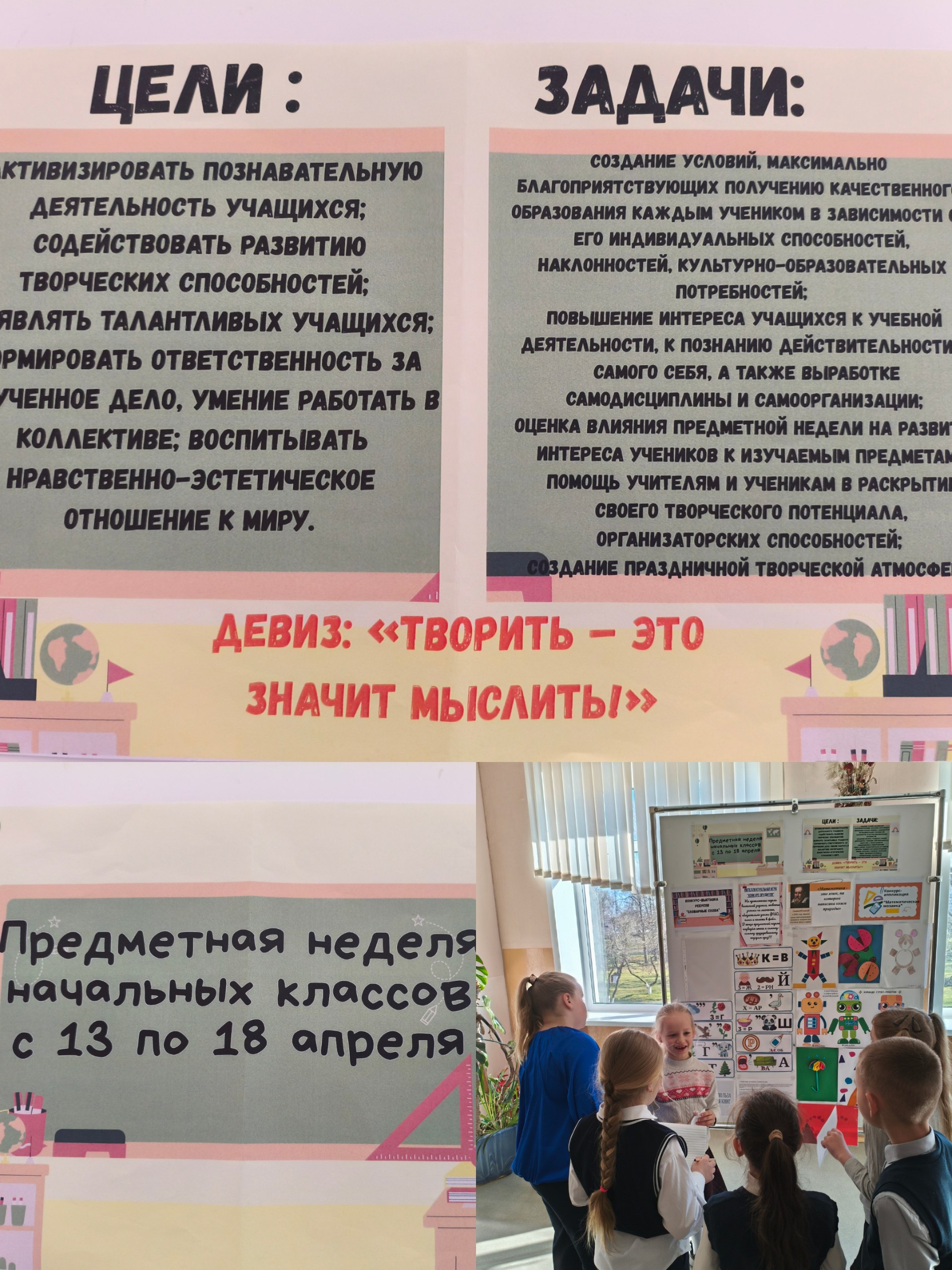 С 13 по 18 апреля в ГУО " Средняя школа № 9 г. Могилёва" проходит неделя начальных классов. Девиз недели: " Творить это значит мыслить!"