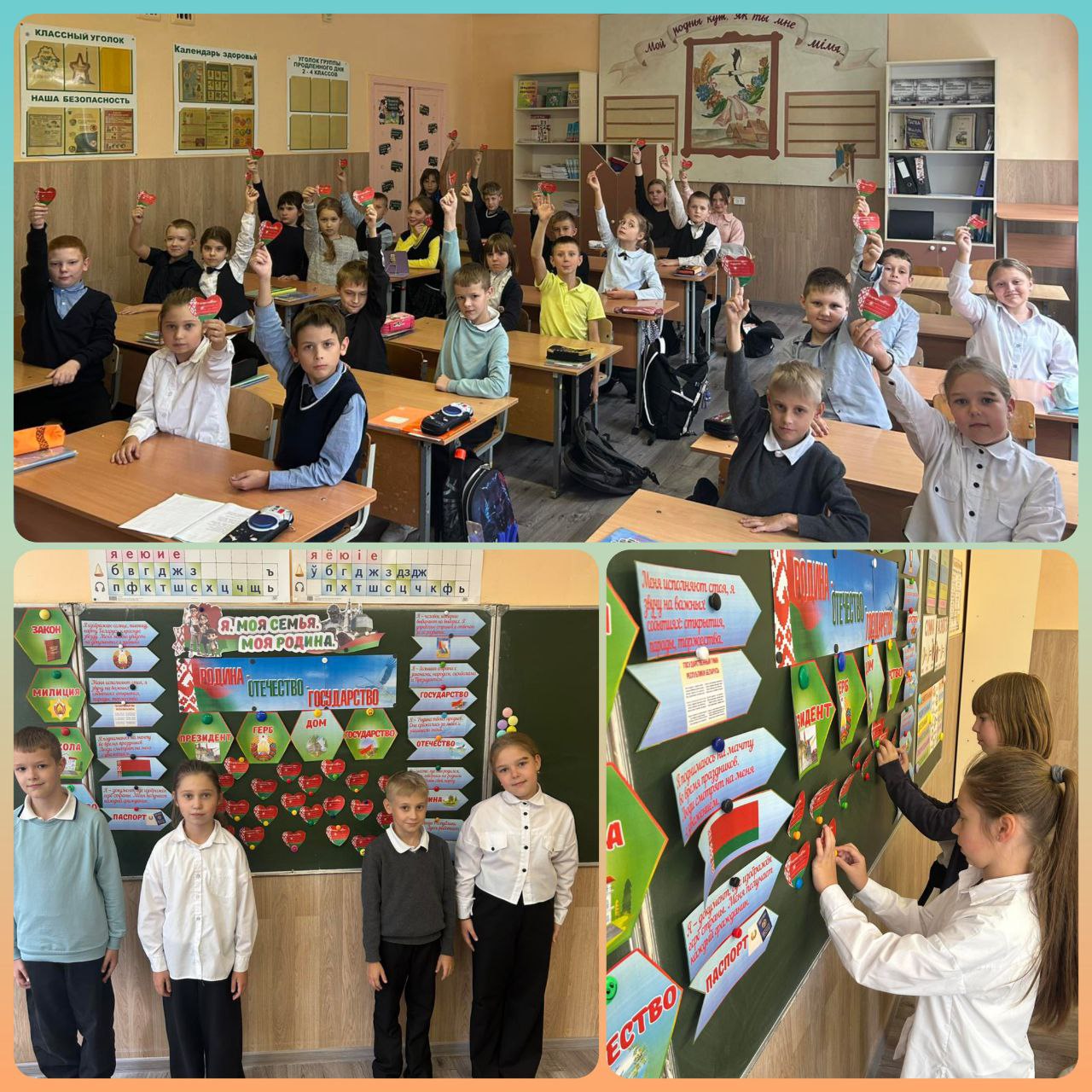 В 4 «А» классе прошло тематическое занятие, в рамках программы «Я. Моя семья. Моя Родина.» . Ребята закрепили свои знания о государственной символике Республики Беларусь, поделились своим мнением, что для них значит «Родина». А подводя итоги мероприятия, каждый учащийся с гордостью говорил: «Я счастлив, что я тут родился!»